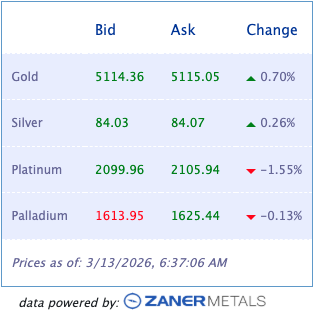 Non-Reliance and Risk Disclosure: The opinions expressed here are for general information purposes only and should not be construed as trade recommendations, nor a solicitation of an offer to buy or sell any precious metals product. The material presented is based on information that we consider reliable, but we do not represent that it is accurate, complete, and/or up-to-date, and it should not be relied on as such. Opinions expressed are current as of the time of posting and only represent the views of the author and not those of Zaner Metals LLC unless otherwise expressly noted.