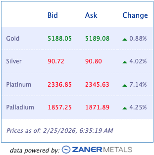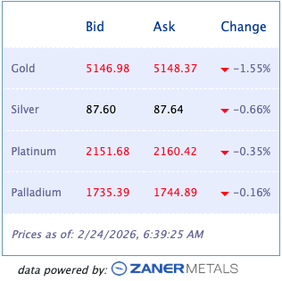 Non-Reliance and Risk Disclosure: The opinions expressed here are for general information purposes only and should not be construed as trade recommendations, nor a solicitation of an offer to buy or sell any precious metals product. The material presented is based on information that we consider reliable, but we do not represent that it is accurate, complete, and/or up-to-date, and it should not be relied on as such. Opinions expressed are current as of the time of posting and only represent the views of the author and not those of Zaner Metals LLC unless otherwise expressly noted.