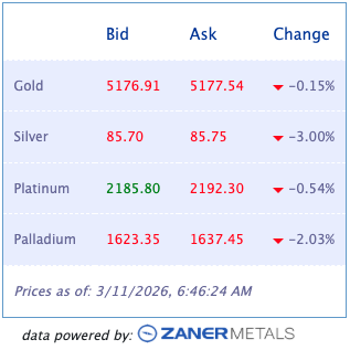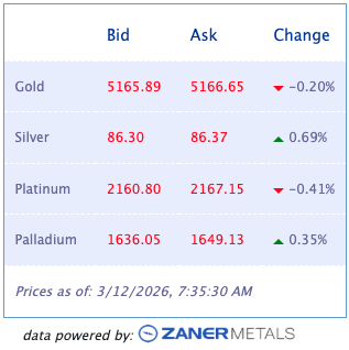 Non-Reliance and Risk Disclosure: The opinions expressed here are for general information purposes only and should not be construed as trade recommendations, nor a solicitation of an offer to buy or sell any precious metals product. The material presented is based on information that we consider reliable, but we do not represent that it is accurate, complete, and/or up-to-date, and it should not be relied on as such. Opinions expressed are current as of the time of posting and only represent the views of the author and not those of Zaner Metals LLC unless otherwise expressly noted.